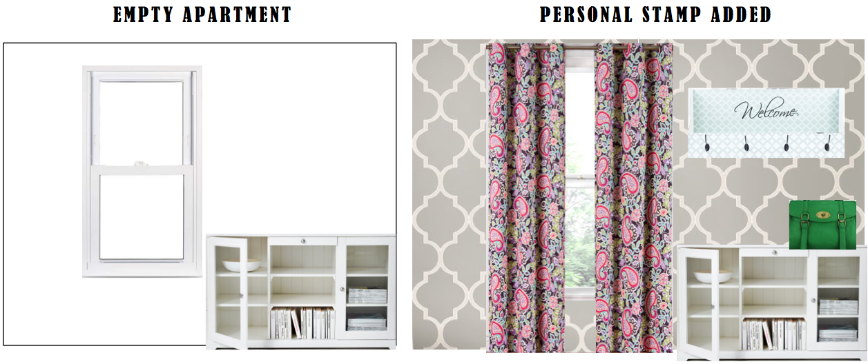 Many rentals do not allow you to paint walls but that does not mean you can't put your own personal stamp on your home. There are many ideas out there. My three favorites are listed below. They give the quickest splash of color and charm, are inexpensive, and can be temporary on a wall.