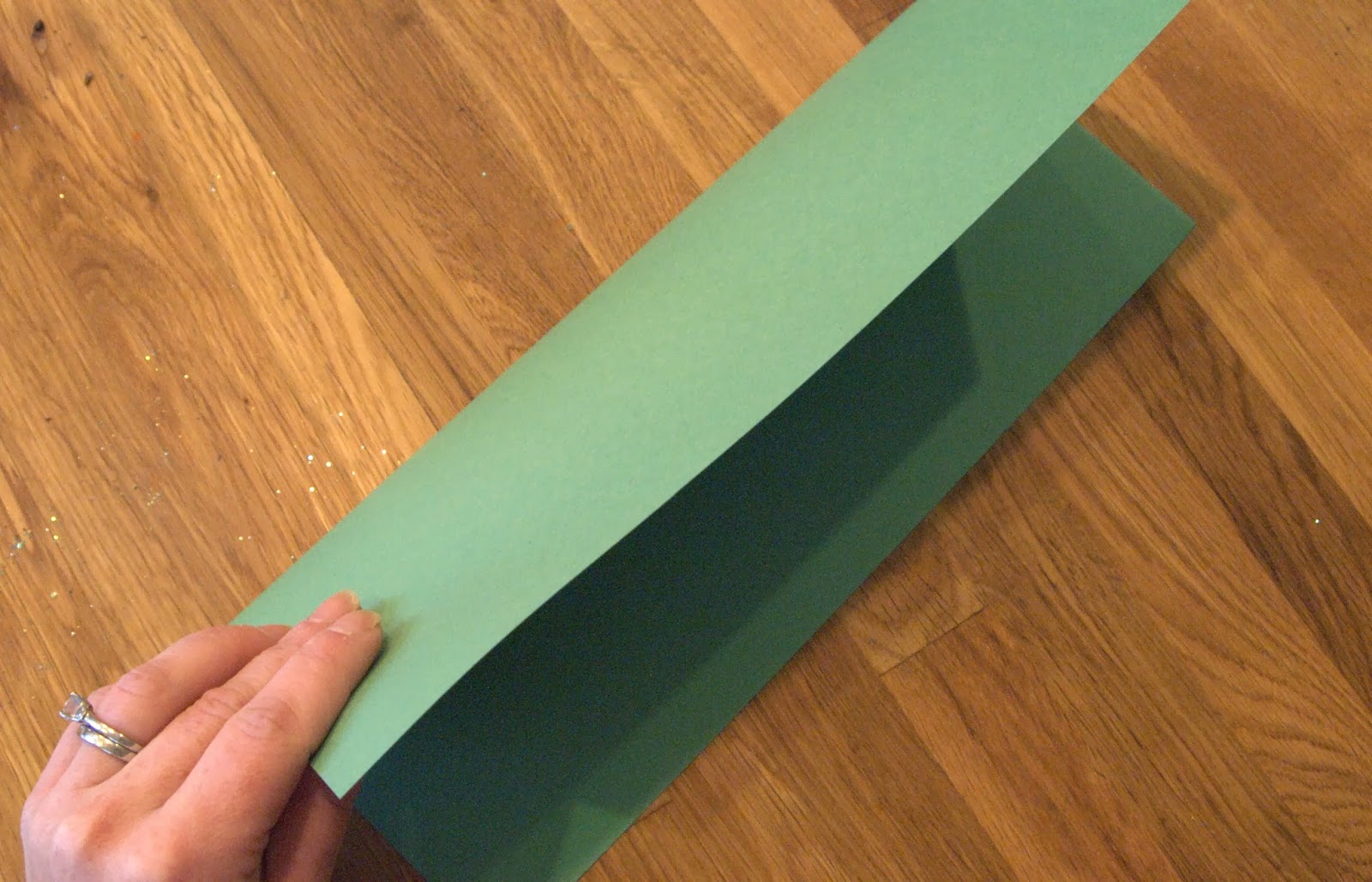 STEP ONE- Fold your paper in half the long way and cut along the folded line so you will end up with two equal pieces (you can make two candle holders!).