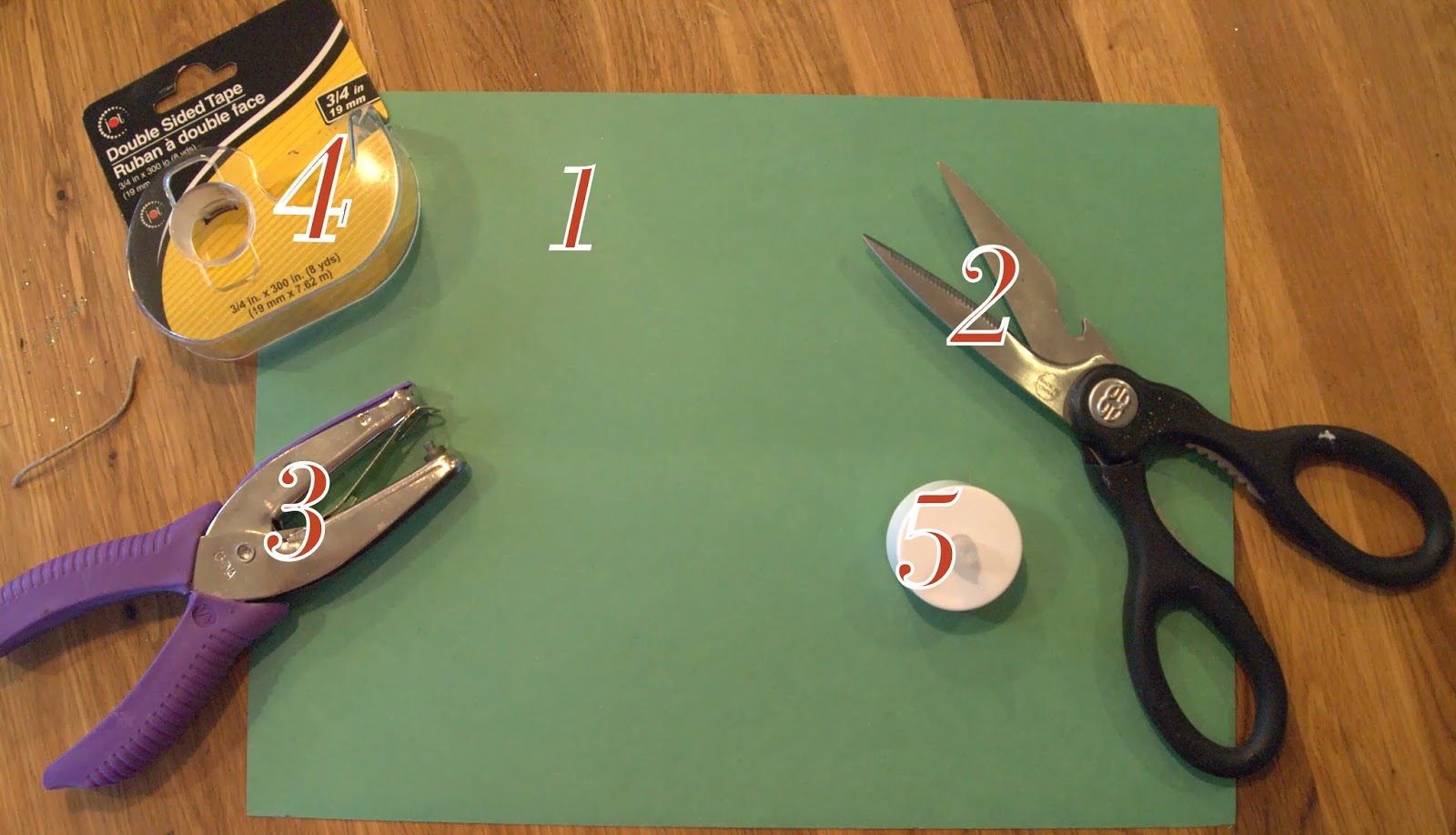 For this project you will need construction paper, scissors, a hole puncher, double sided tape and a battery operated candle.