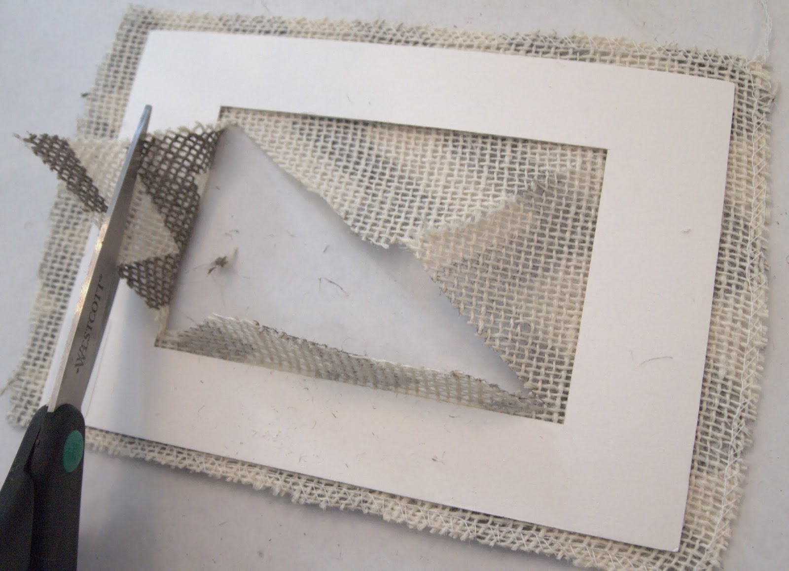 2. Burlap as wide as the mat opening (you can substitute this for any fabric or pretty paper).